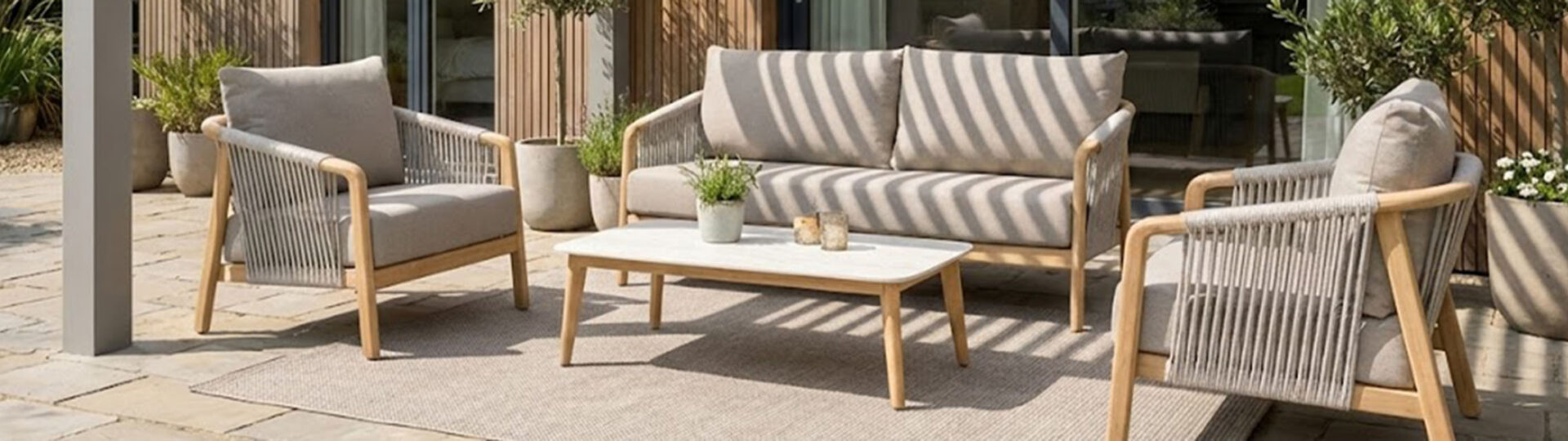 Unser Sortiment umfasst formschöne und gemütliche Sofas aus Aluminium, Geflecht und Teak. Bei manchen Stücken können Sie einzelne Elemente kaufen und sich Ihr ganz persönliches Wunschsofa zusammenstellen! Vom modernen Aluminium-Sofa im modernen Design über das pflegeleichte Geflecht-Sofa bis hin zum zeitlosen Terrassenmöbel aus Teak: Bei uns finden Sie garantiert die optimale Sitzgelegenheit für Ihre Relax-Zone! Eine Vielfalt an Farben und Ausführungen bei den Sitzpolstern und Kissen sorgt dafür, dass Sie Ihr neues Sofa auch farblich perfekt an Ihren Wohnraum oder Außenbereich anpassen können. Besuchen Sie uns doch in unserem Schauraum und überzeugen Sie sich vor Ort von der Qualität und dem Komfort unserer Sofas – wir freuen uns auf Sie!