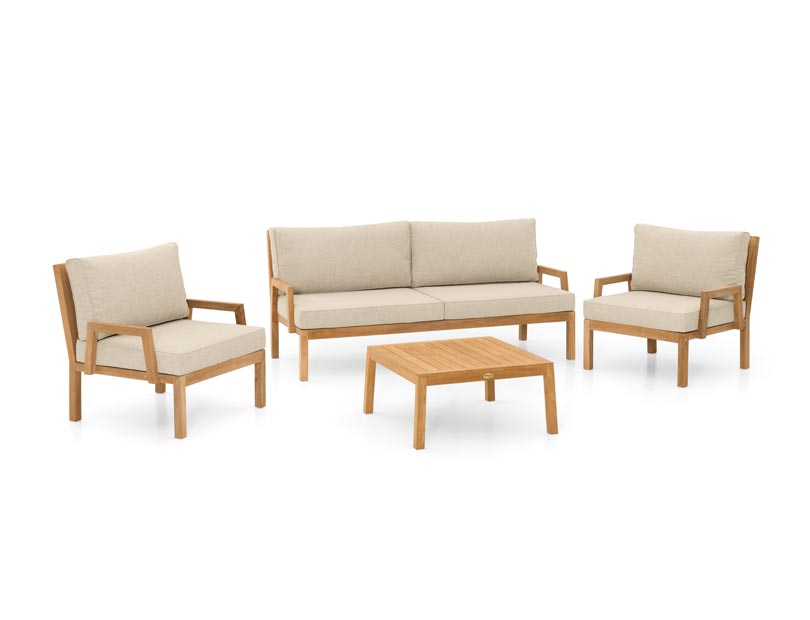 Die Teak Loungegruppe Set Nizza von Teak-It bringt entspannten Komfort und stilvolles Design in deinen Garten, auf die Terrasse oder den Balkon. Gefertigt aus hochwertigem, wetterbeständigem Teakholz überzeugt dieses Lounge-Set durch natürliche Widerstandskraft, Langlebigkeit und zeitlose Eleganz. Die bequemen Sitzflächen und großzügige Liegefläche laden zum Relaxen, Lesen oder geselligen Beisammensein ein, während die robuste Verarbeitung und pflegeleichte Oberfläche eine ganzjährige Nutzung ermöglichen. Durch das harmonische Design lässt sich das Set vielseitig mit weiteren Outdoor-Möbeln kombinieren und schafft eine gemütliche Lounge-Oase im Freien – perfekt für Sommerabende und Outdoor-Momente.